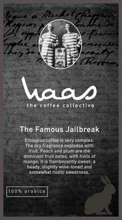 I’m very impressed with Haas. They sent me two single origin coffees: “The Mysterious Gentleman,” a complex Guatemalan coffee, and “The Famous Jailbreak,” an Ethiopian coffee that is rather sweet. Haas has style down to a tee, and all it takes is one glance at the labels that Haas puts on their bags to know this.